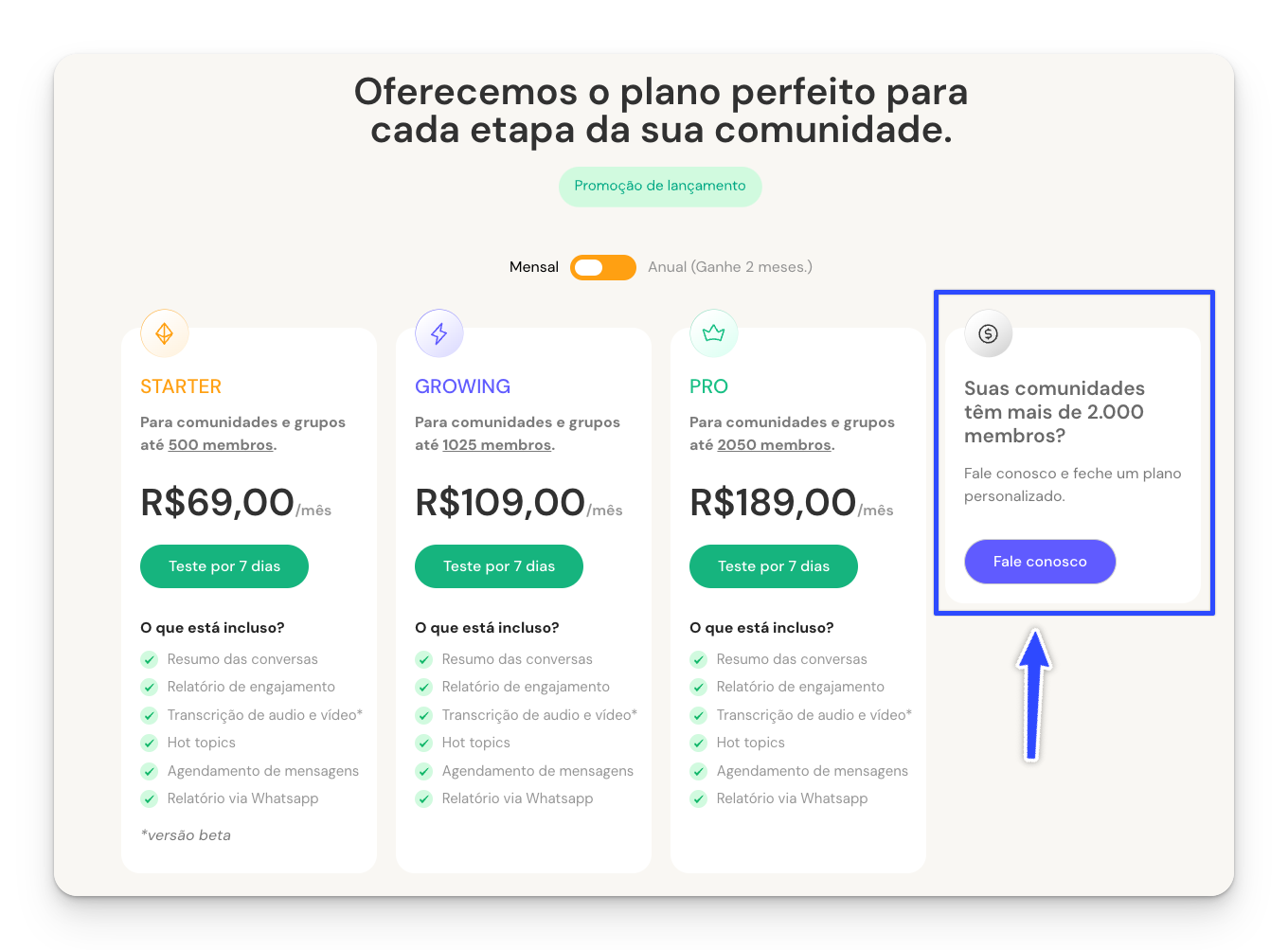 Eu entendo que empresas de médio/grande porte, e até mesmo infoprodutores com comunidades maiores, querem ter contato comigo antes de assinar a ferramenta. Normalmente, esse contato serve para tirar dúvidas, negociar preço, ou simplesmente conhecer a ferramenta. Fica aqui uma reflexão importante sobre sempre deixar aberto suas vias de comunicação, principalmente se você vende para B2B.
