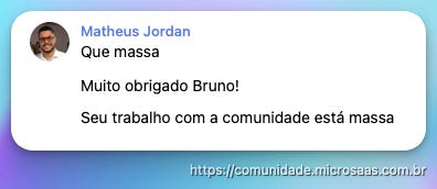 Em breve, com mais tempo e recursos quero ter uma landingpage para o pessoal subir os Micro-SaaS e suas métricas (#BuildInPublic). E quem sabe, não vender seus projetos também? Quer me ajudar com esse projeto? Responda este email.